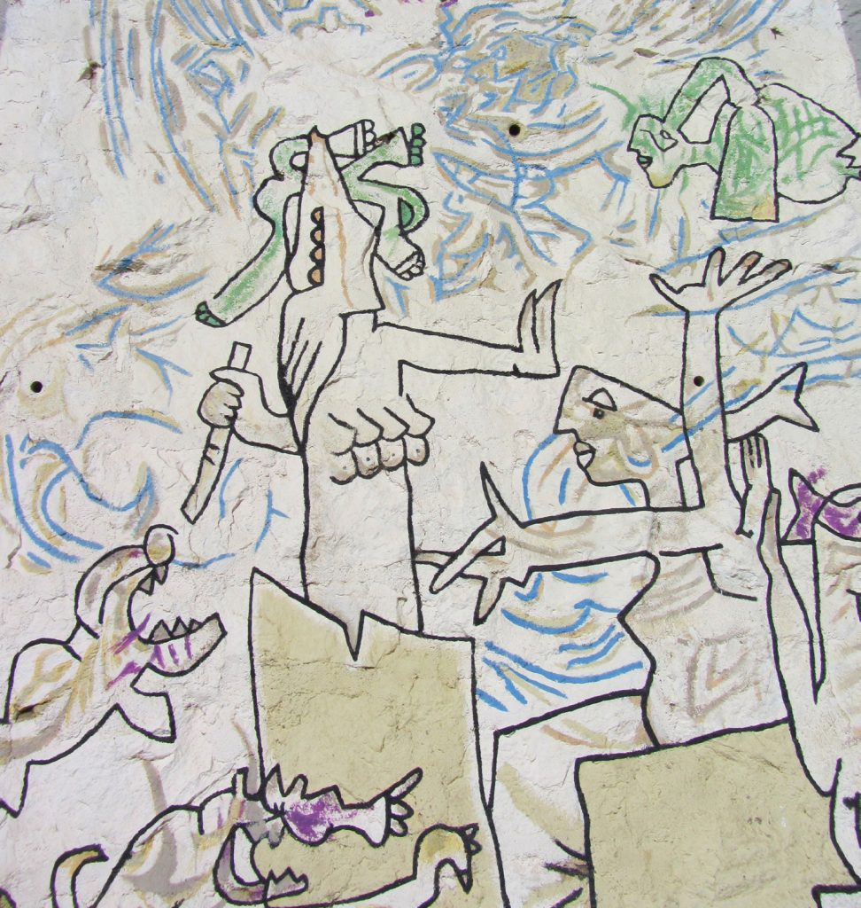 Imagen: Detalle de Mural 10 (1992), de Roberto Matta, en el Museo a Cielo Abierto de Valparaíso.